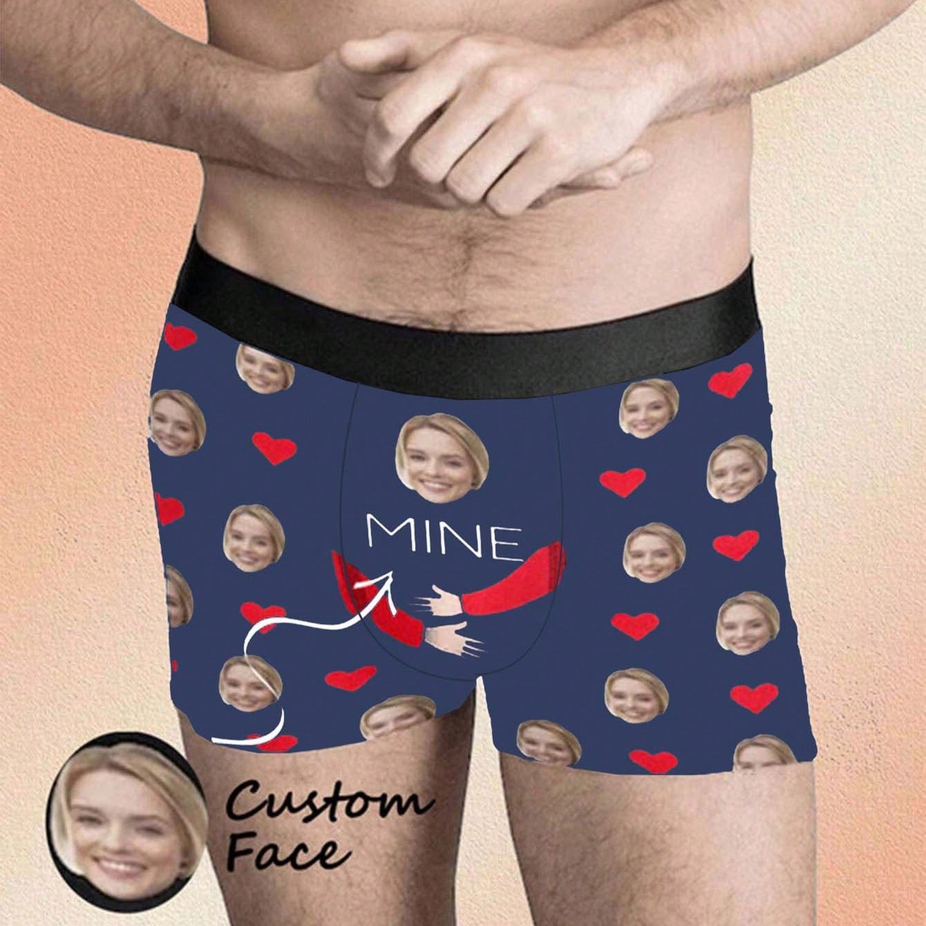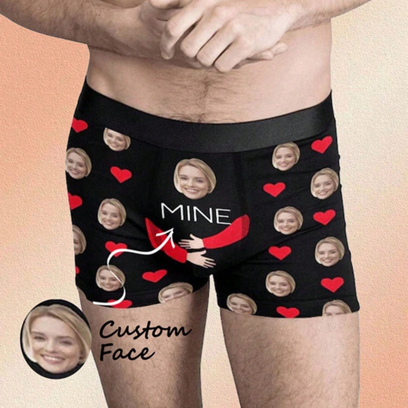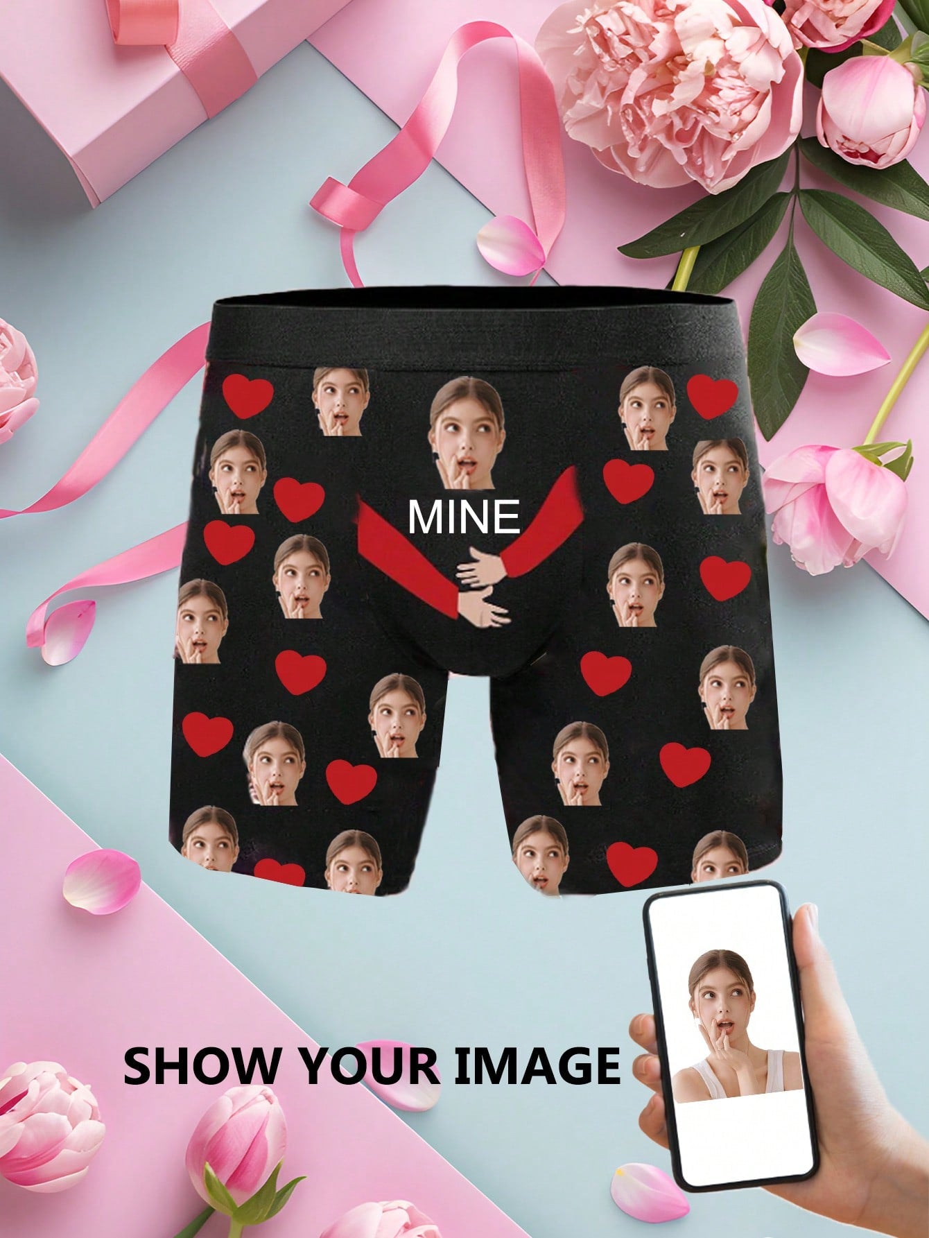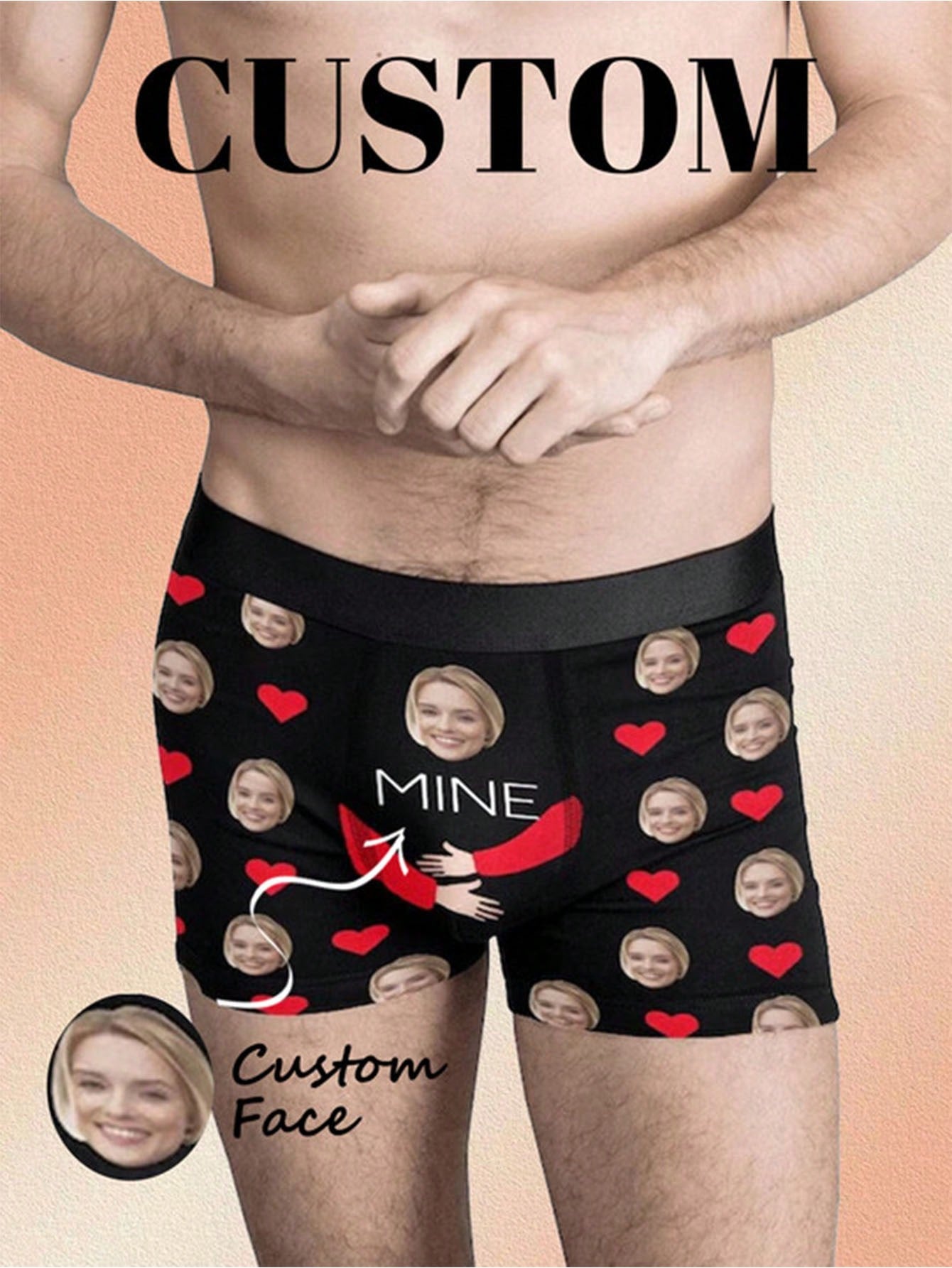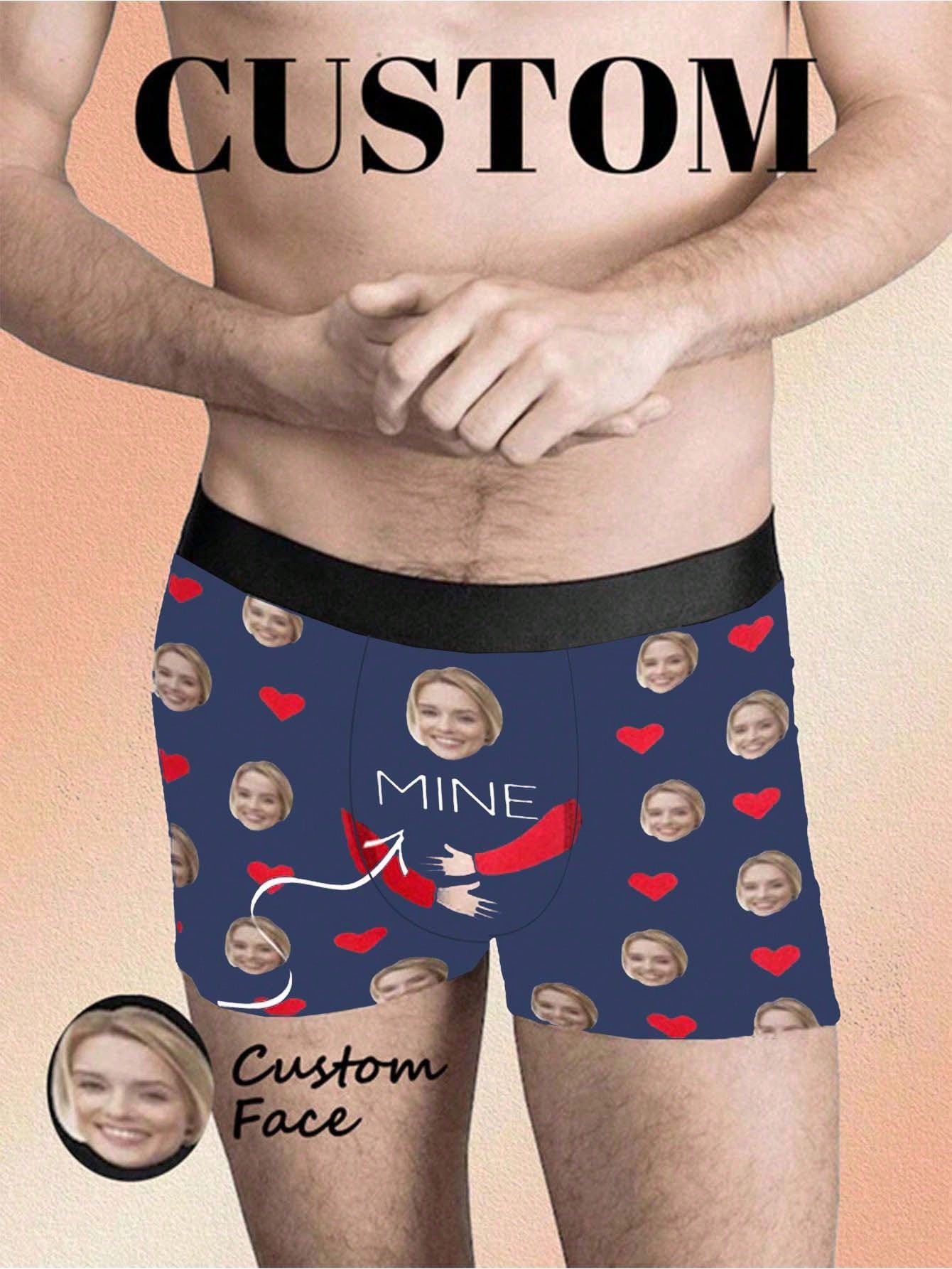ボーイフレンド、夫、お父さんのための顔入り1ピースカスタムボクサー、写真入りカスタム下着、写真ボクサー、写真ボクサー、パーソナライズされたギフト。